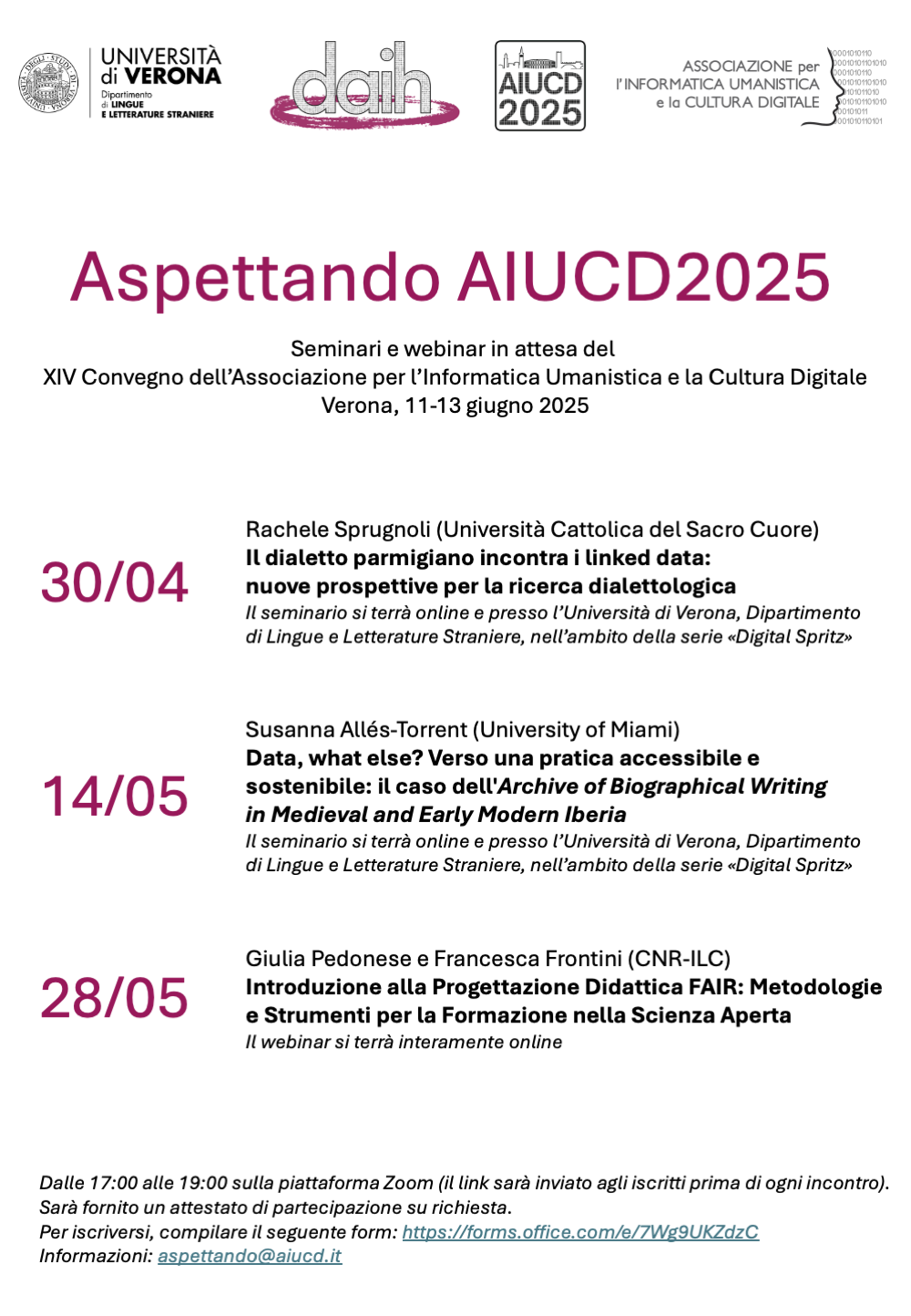 Nell’attesa di vederci a Verona tra l’11 e il 13 giugno, ci incontreremo nell’ormai tradizionale ciclo di webinar che precede il convegno annuale di AIUCD.