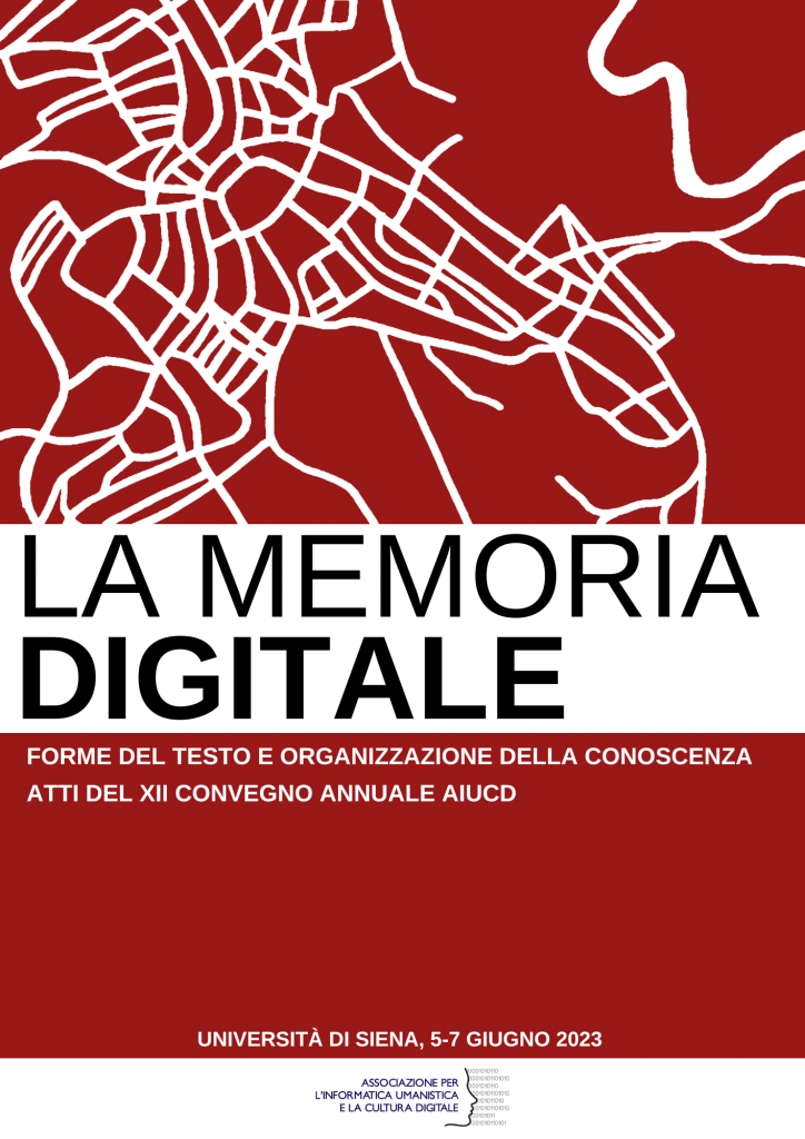 A cura di: Carbé, Emmanuela; Lo Piccolo, Gabriele; Valenti, Alessia; Stella, Francesco (2023). La memoria digitale: forme del testo e organizzazione della conoscenza. Atti del XII Convegno Annuale AIUCD. Siena: Università degli Studi di Siena