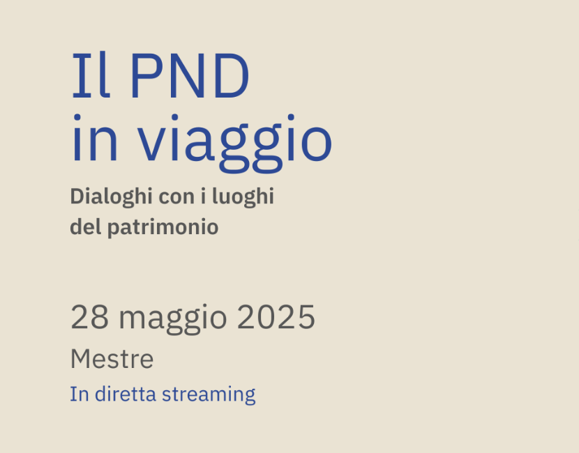 Il 28 maggio 2025 a Mestre l’associazione AIUCD partecipa all’evento Il PND in viaggio. Dialoghi con i luoghi del patrimonio, curato dall’Istituto centrale per la digitalizzazione del patrimonio culturale – Digital Library, in collaborazione con Scuola nazionale del patrimonio e delle attività culturali.